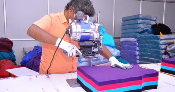 Our cutting department has lay cutting straight knife machines and can cut up to 5000 pcs per day. Very intricate shapes can be cut by our BAND knife cutting machines. Also we have a manual cutting team to cut yarn dyed and small parts with embellishments.